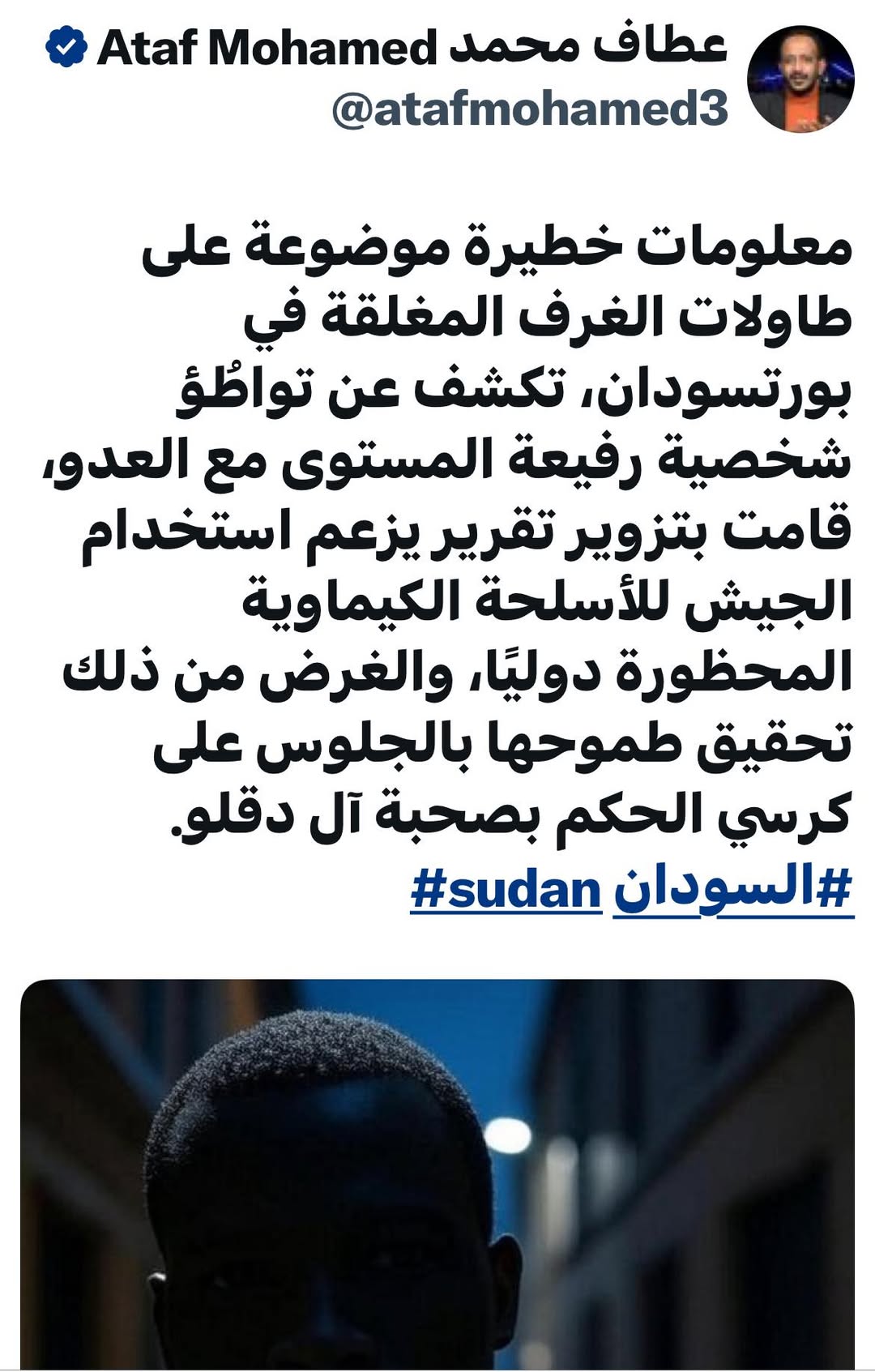 منطقياً وبالنظر لتاريخ صدور التقرير وواقعة استخدام الكيماوي سنجد ببساطة ان الحدث كان في لحظات استعادة الجيش للمبادرة والتقدم وتراجع الدعم السريع .. بمعنى اذا كانت الشخصية المتهمة يريد حكم البلاد مع ال دقلو كان بيده فعل الكثير عندما كانت المبادرة بيد الدعم السريع وليس العكس .