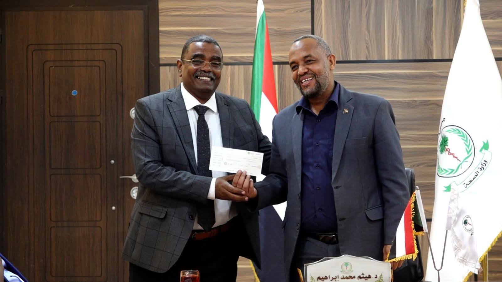 بورتسودان 23-10-2025 (سونا)- تسلّم وزير الصحة شيكًا بمبلغ 500 مليون جنيه سوداني، تبرعًا من غرفة مستوردي الأدوية، دعمًا للمبادرة الوطنية لدعم الصحة.