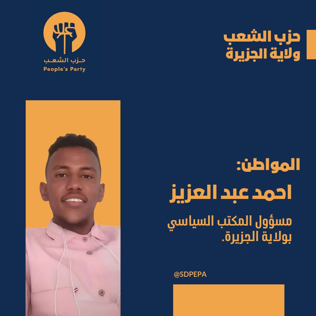 اصدر المواطن عمر التوم رئيس مكتب الحزب بولاية الجزيرة قرارا بتكليف المواطن احمد عبد العزيز مسؤولا للمكتب السياسي بالولاية.