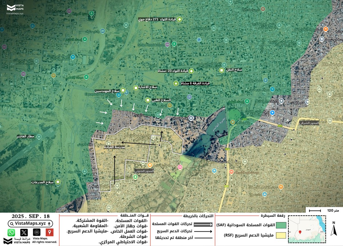 Vista #شمال_دارفور | الفاشر ◉ في المحور الجنوبي مليشيا الدعم السريع باتت تسيطر على مد… By null Published October 23, 2025 Share SHARE Facebook Twitter Pinterest LinkedIn #شمال_دارفور | الفاشر ◉ في المحور الجنوبي مليشيا الدعم السريع باتت تسيطر على مدرسة القيادة الثانوية للبنات. Source by VISTA Facebook Twitter Pinterest LinkedIn Share This Article Facebook Twitter Email Print Previous Article وثقت يونيسف أكثر من 1,100 انتهاك جسيم بحق الأطفال في الفاشر منذ أبريل 2024، بينه… Next Article ETHIOPIA | Prime Minister Abiy Ahmed has announced the imminent launch of Nigeri… Leave a Comment Leave a Reply Cancel replyYour email address will not be published. Required fields are marked *Comment * Name * Email * Website Save my name, email, and website in this browser for the next time I comment. Δ SearchSearchRecent Posts… ما حقيقة صورة المركبات التي يُزعم أنها احترقت في اشتباكات داخلية وسط «الدعم السر… … When this happens, it’s usually because the owner only shared it with a small gr… لو ما كلموك ودسوا منك معناها إنت ( ما مصدر ثقة ) وعارفنك بتاع ( قنابل ) … واتع… Recent CommentsNo comments to show.