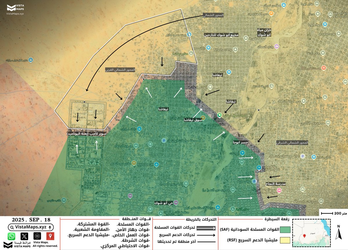 ◉ هذه المعطيات تفسر التحركات الأخيرة في المحور الشمالي الغربي ومن المتوقع أن تنتقل جولات القتال لاحقًا إلى داخل الجزء الغربي من نيفاشا، وهو ما قد يمنح القوات المسلحة هامش حركة أفضل مما واجهته في الخنادق المكشوفة شمال غرب المدينة.
