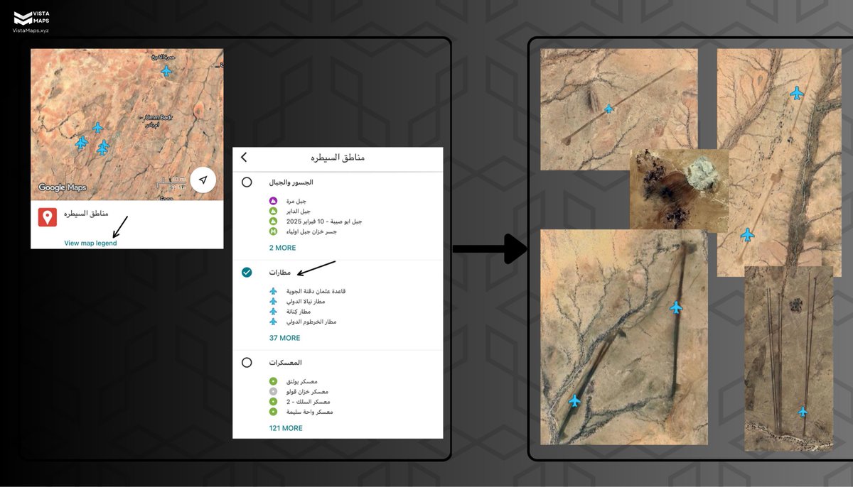 ننصحكم بالدخول إلى خريطة السيطرة الرئيسية (https://t.co/wESUKP5cAQ ) ثم إخفاء التفاصيل غير الضرورية وتفعيل طبقة المطارات حيث ستظهر لكم المواقع بشكل أوضح.