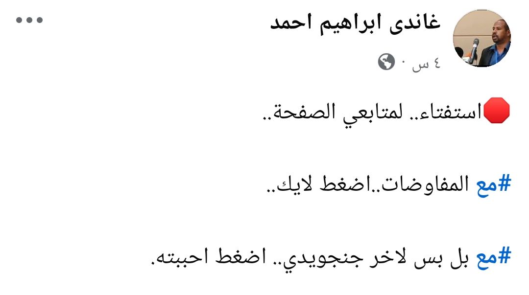 معمر موسى دي مقابلة غبية By null Published October 24, 2025 Share SHARE Facebook Twitter Pinterest LinkedIn دي مقابلة غبية Source Facebook Twitter Pinterest LinkedIn Share This Article Facebook Twitter Email Print Previous Article كبير الأحزاب السودانية قد قال قوله ! Next Article زايلي زايلي Leave a Comment Leave a Reply Cancel replyYour email address will not be published. Required fields are marked *Comment * Name * Email * Website Save my name, email, and website in this browser for the next time I comment. Δ SearchSearchRecent Postsتتذكر دارفور ٢٠٠٣ تتذكر الحرب ٢٠٢٣ #المرياع_ماينوم #لإقتلاع #إرادة_الحركة_الجماهيرية_هي_الحل تحياتي جميعاً … لمن فاته لايف التيكتوك … سيجد التسجيل في الرابط أدناه على قن… رئيس حزب الأمة مبارك الفاضل: السلام ليس ضرورة لسلامة الشعب فحسب، بل هو ضرورة للح… حالة #الطقس في #السودان غداً #الشرق_السودان Recent CommentsNo comments to show.