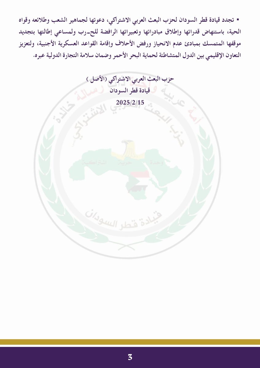 حزب البعث العربي الاشتراكي الأصل … By null Published July 18, 2025 Share SHARE Facebook Twitter Pinterest LinkedIn[ad_1] [ad_2] Source by حزب البعث العربي الاشتراكي – الأصل Facebook Twitter Pinterest LinkedIn Share This Article Facebook Twitter Email Print Previous Article توصيات ورشة الحوار السوداني السوداني : في العاشر من شهر مارس للعام 2025م عقدت … Next Article المقاومة الشعبية بمروي تدعو الشباب للانخراط في معسكرات التدريب مروي 18-7-2025 (… Leave a Comment Leave a Reply Cancel replyYour email address will not be published. Required fields are marked *Comment * Name * Email * Website Save my name, email, and website in this browser for the next time I comment. Δ SearchSearchRecent Postsأكرمنا الله صباح اليوم الأحد بلقاء إخوةٍ كرام، على ضفة النيل الأزرق، حيث شاي الش… أعلن بنك السودان المركزي في منشور إدارة السياسات رقم (2025/15) رفع الاحتكار عن ا… ندوة بعنوان: القانون الدولي والسيادة الوطنية قراءة في موقف السودان من لجنة تقصي … والي نهر النيل تستقبل وزير الموارد البشرية والرعاية الاجتماعية الوزير يشيد بالأ… كامل ادريس: رئيس اللجنة السياسية لمؤسسات الدولة السودانية. Recent CommentsNo comments to show.