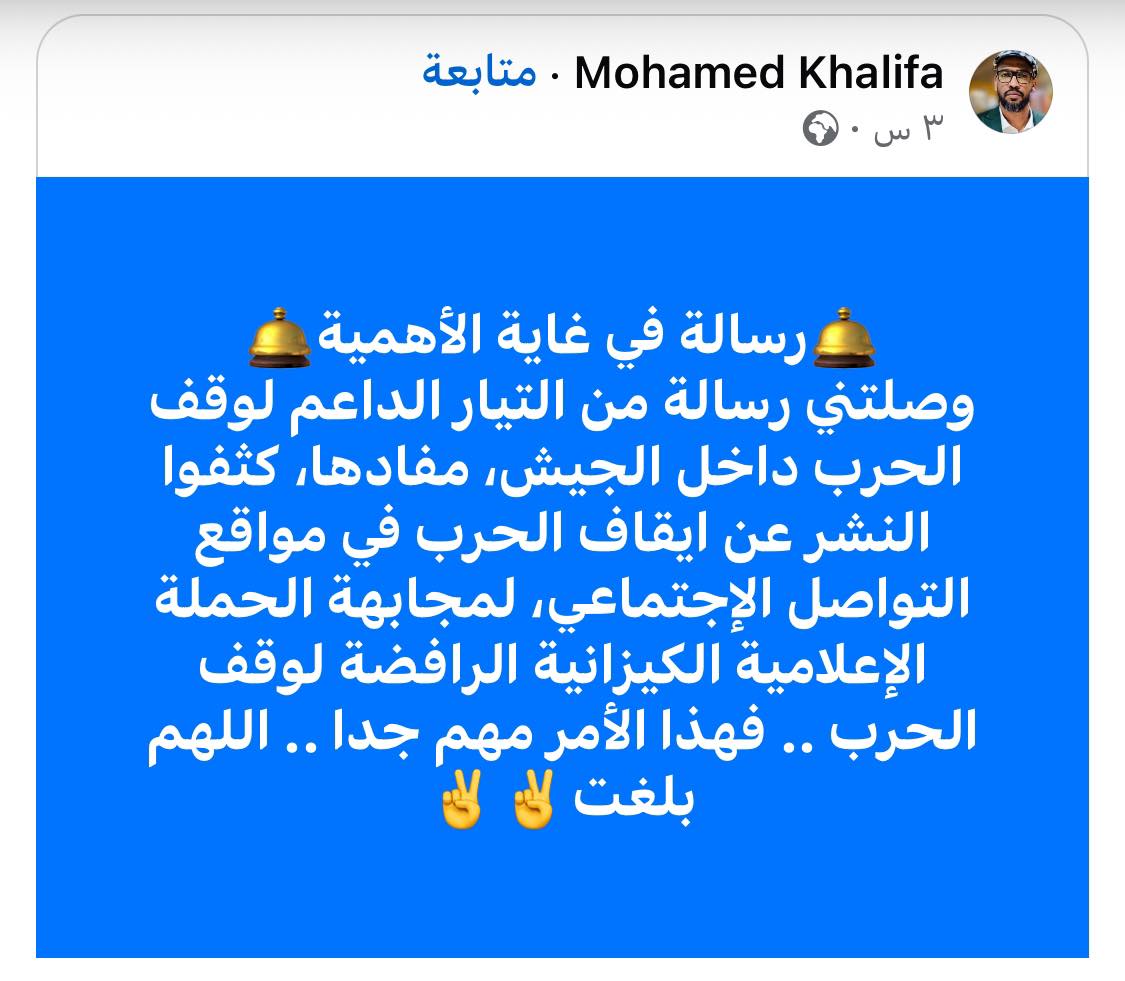 المرجفين والحاقدين والمؤلفة قلوبهم اخرجوا كل ما في جوفهم لعدم معرفتهم ما يدور في أمريكا واجتماع وزير الخارجية ومايه خليفة اشهرهم قال في ناس في الجيش اتواصلوا معاهم منتهي الغباء لمن انت عندك جناح في الجيش ليه تكشفه بس كلام والسلام وفد الخارجية لا علاقة له بالحرب والأيام سوف توضح ذلك لا تستعجلوا كل واحد عامل فيها ابو العريف