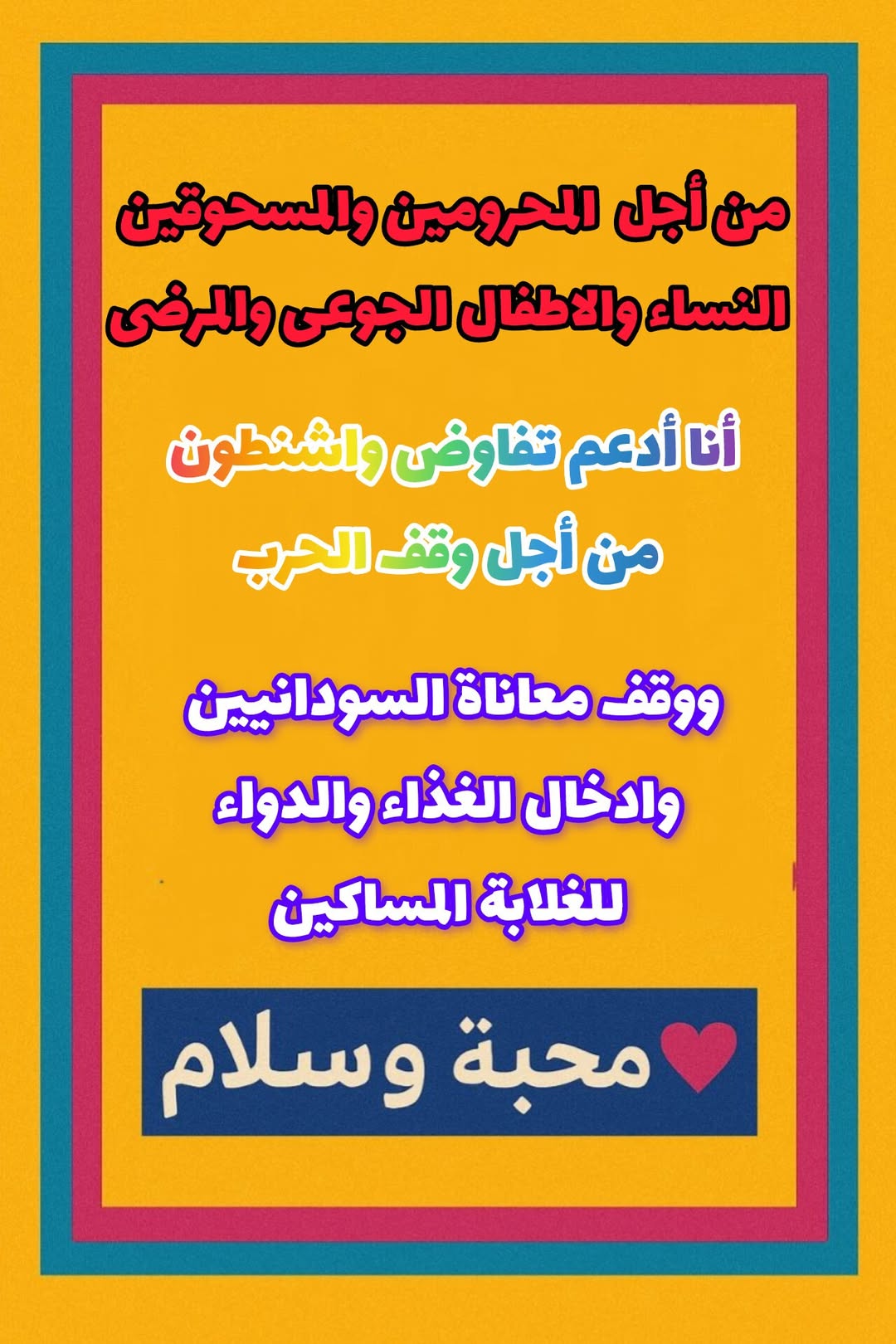 محمد خليفة #نعم_للسلام By null Published October 24, 2025 Share SHARE Facebook Twitter Pinterest LinkedIn #نعم_للسلام Source Facebook Twitter Pinterest LinkedIn Share This Article Facebook Twitter Email Print Previous Article حكومة الخرطوم تُطلق حملة لتوزيع الغاز للمواطنين في الولاية بهدف توفيره للمواطنين… Next Article الهلال الأحمر فرع الخرطوم يدشن المرحلة الثالثة من مشروع (دعم التكايا) الخرطوم … Leave a Comment Leave a Reply Cancel replyYour email address will not be published. Required fields are marked *Comment * Name * Email * Website Save my name, email, and website in this browser for the next time I comment. Δ SearchSearchRecent Postsوزير المعادن يتلقي برئيس وأعضاء اتحاد المعدنيين الصينيين ويثمن دورهم في ترويج ال… شغل جديد عندما يكون هنالك هجمات بالمسيرات من قبل المتمردين ، تأكدوا بأن بالمقابل هنالك تق… الأسبوع في دقيقة.. شاهدوا مقدمة #فوق_السلطة مع نزيه الأحدب.. السفير الصيني يؤكد أن قمة ترمب وشي فرصة للتعاون وتحقيق الازدهار المشترك بين الصي… Recent CommentsNo comments to show.