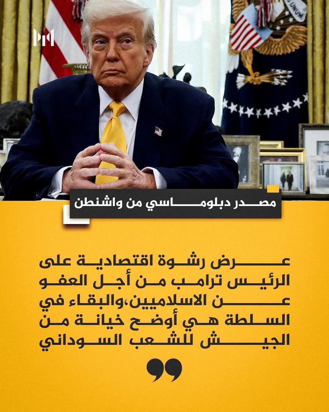 كشف مصدر دبلوماسي رفيع في واشنطن أن وفد الجيش السوداني قدّم عرضًا اقتصاديًا خلال اجتماعات التفاوض الأخيرة في العاصمة الأمريكية، يقوم على منح الولايات المتحدة امتيازات في معادن السودان وواجهة من سواحل البحر الأحمر مقابل ضغط أمريكي على قوات الدعم السريع للتراجع عن مسار الحكم المدني وتسوية ملف الإسلاميين والمطلوبين للجنائية الدولية وفك الحصار عن الفاشر.