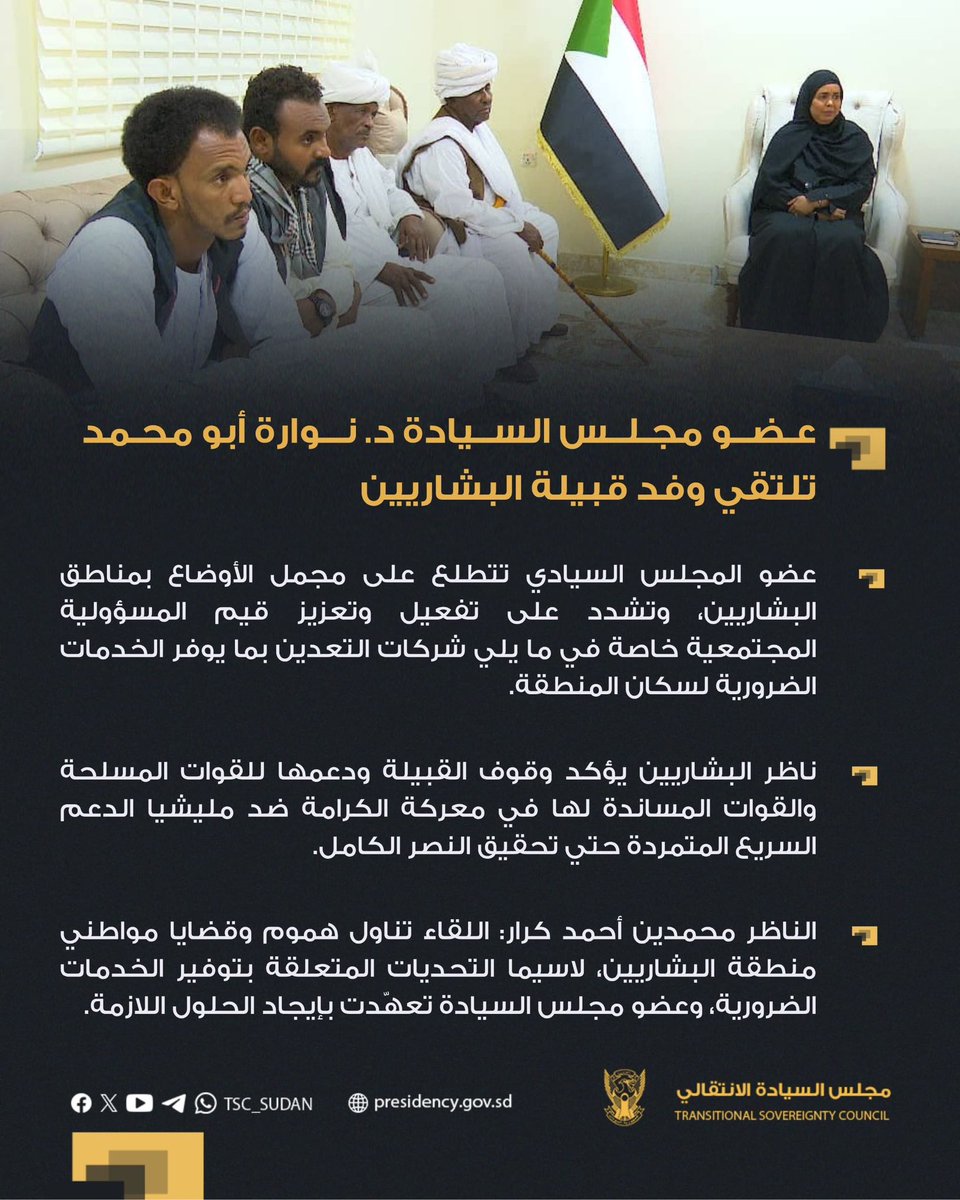 مجلس السيادة عضو مجلس السيادة د. نوارة أبو محمد تلتقي وفد قبيلة البشاريين بورتسودان ١٠-٧-٢٠… By null Published July 21, 2025 Share SHARE Facebook Twitter Pinterest LinkedIn[ad_1] ⭕️ عضو مجلس السيادة د. نوارة أبو محمد تلتقي وفد قبيلة البشاريين بورتسودان ١٠-٧-٢٠٢٥م [ad_2] Source by مجلس السيادة الإنتقالي – السودان Facebook Twitter Pinterest LinkedIn Share This Article Facebook Twitter Email Print Previous Article التقيت صباح اليوم مع السيد رئيس الوزراء الدكتور كامل إدريس، حيث أثنيت على قبوله … Next Article فيديو | البرهان يعزي في أسر شهداء الصالحة والجموعية #سونا #السودان Leave a Comment Leave a Reply Cancel replyYour email address will not be published. Required fields are marked *Comment * Name * Email * Website Save my name, email, and website in this browser for the next time I comment. Δ SearchSearchRecent Postsأكرمنا الله صباح اليوم الأحد بلقاء إخوةٍ كرام، على ضفة النيل الأزرق، حيث شاي الش… أعلن بنك السودان المركزي في منشور إدارة السياسات رقم (2025/15) رفع الاحتكار عن ا… ندوة بعنوان: القانون الدولي والسيادة الوطنية قراءة في موقف السودان من لجنة تقصي … والي نهر النيل تستقبل وزير الموارد البشرية والرعاية الاجتماعية الوزير يشيد بالأ… كامل ادريس: رئيس اللجنة السياسية لمؤسسات الدولة السودانية. Recent CommentsNo comments to show.