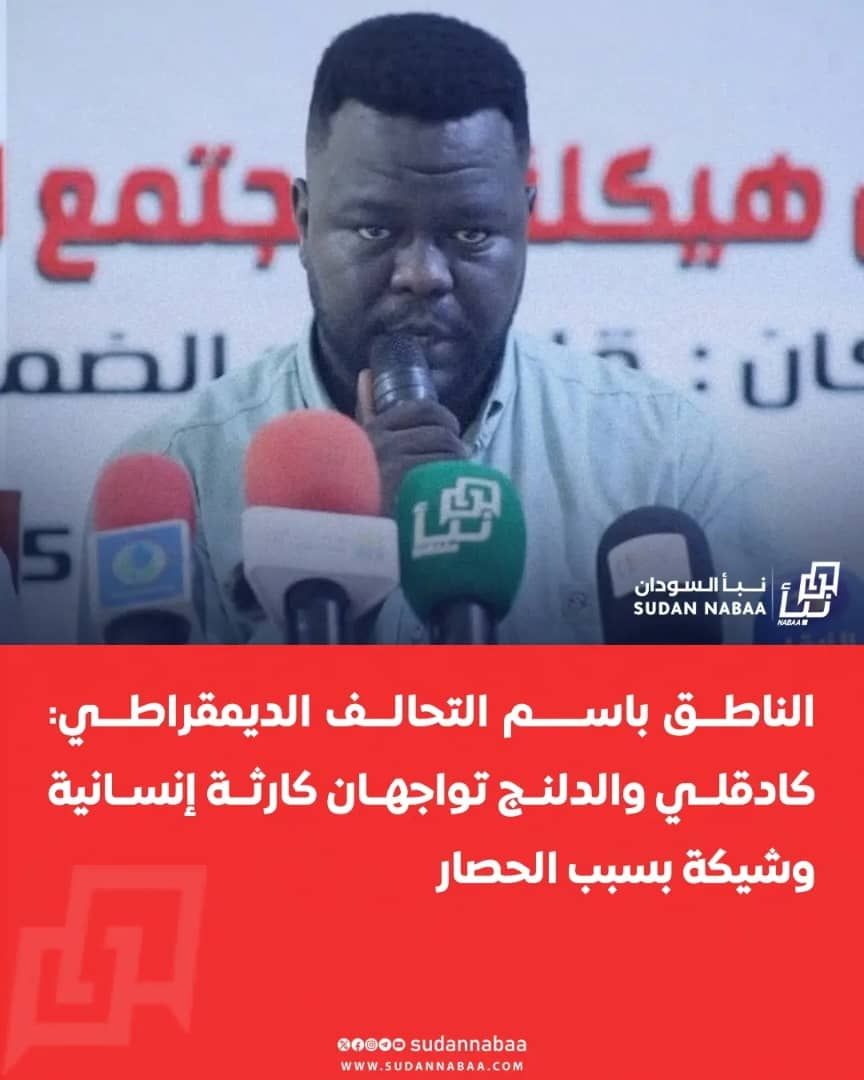 حذر الناطق الرسمي باسم التحالف الديمقراطي للعدالة الاجتماعية، حذيفة عبدالله، من تدهور خطير للأوضاع الإنسانية في مدينتي كادقلي والدلنج بجنوب كردفان، مؤكدًا أن المنطقتين تواجهان نقصًا حادًا في الغذاء ومستلزمات الحياة الضرورية منذ أكثر من عامين نتيجة الحصار وإغلاق الطرق من قبل مليشيا الدعم السريع والحركة الشعبية بقيادة الحلو.