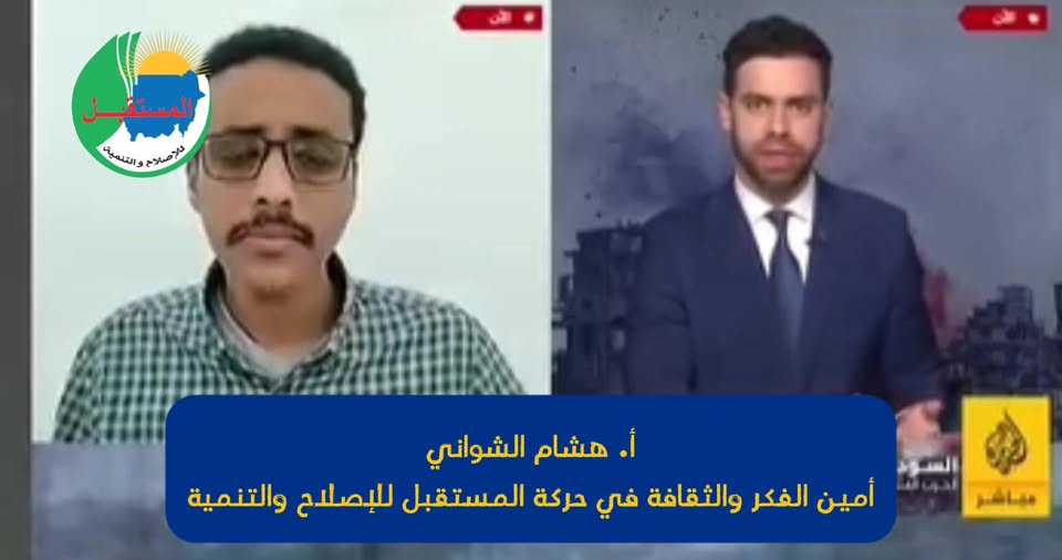 أمين الفكر والثقافة في حزب حركة المستقبل للإصلاح والتنمية أ. هشام الشواني يتحدث عن الراهن السياسي في السودان _ قناة الجزيرة مباشر.