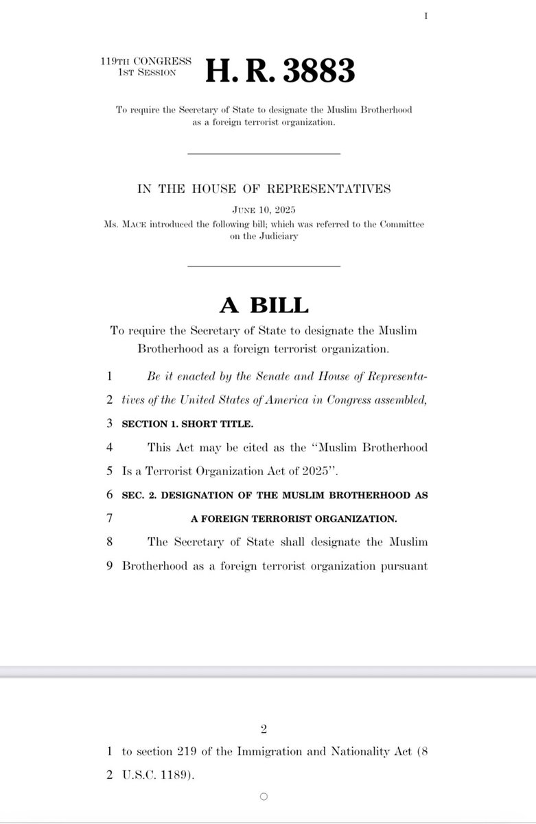 🚨 اعادة إحياء مساعي ادراج الإخوان المسلمين على لوائح الارهاب في الكونغرس- السيناتور الجمهوري تيد كروز يطرح مشروع قانون في الشيوخ يحظى بدعم جمهوري، بعد طرح مشروع مماثل في النواب من قبل النائبة الجمهورية نانسي مايس