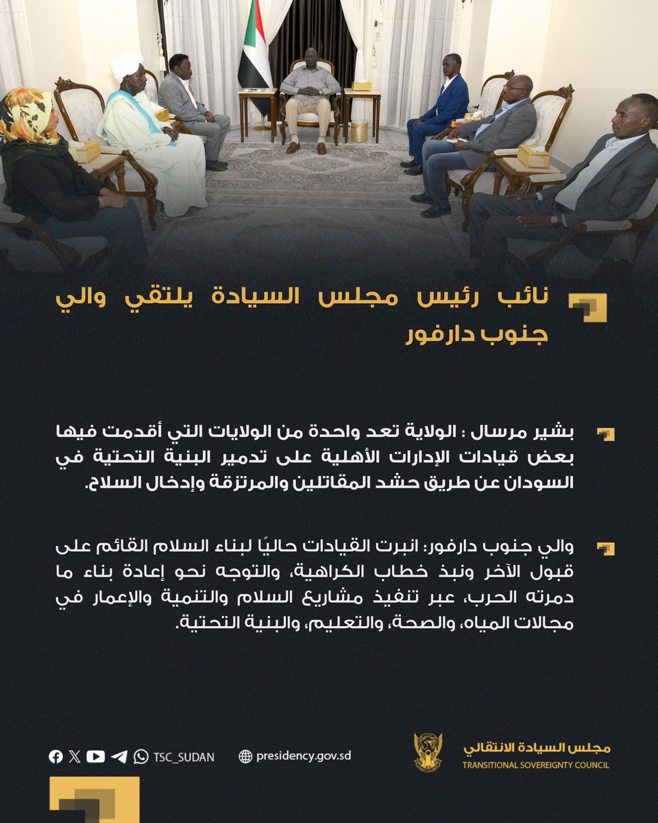 مجلس السيادة نائب رئيس مجلس السيادة يلتقي والي جنوب دارفور بورتسودان ٩-٧-٢٠٢٥م … By null Published July 23, 2025 Share SHARE Facebook Twitter Pinterest LinkedIn[ad_1] ⭕️ نائب رئيس مجلس السيادة يلتقي والي جنوب دارفور بورتسودان ٩-٧-٢٠٢٥م [ad_2] Source by مجلس السيادة الإنتقالي – السودان Facebook Twitter Pinterest LinkedIn Share This Article Facebook Twitter Email Print Previous Article Yesterday, I departed alongside His Excellency the Undersecretary of the Ministr… Next Article لجنة أمن سنار تناقش الأوضاع الأمنية وتأمين الموسم الزراعي سنجة 23-7-2025 (سونا)… Leave a Comment Leave a Reply Cancel replyYour email address will not be published. Required fields are marked *Comment * Name * Email * Website Save my name, email, and website in this browser for the next time I comment. Δ SearchSearchRecent Postsأكرمنا الله صباح اليوم الأحد بلقاء إخوةٍ كرام، على ضفة النيل الأزرق، حيث شاي الش… أعلن بنك السودان المركزي في منشور إدارة السياسات رقم (2025/15) رفع الاحتكار عن ا… ندوة بعنوان: القانون الدولي والسيادة الوطنية قراءة في موقف السودان من لجنة تقصي … والي نهر النيل تستقبل وزير الموارد البشرية والرعاية الاجتماعية الوزير يشيد بالأ… كامل ادريس: رئيس اللجنة السياسية لمؤسسات الدولة السودانية. Recent CommentsNo comments to show.