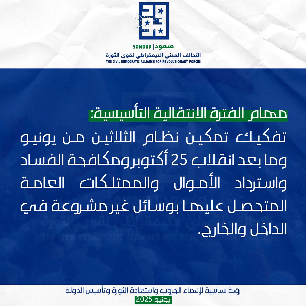 مهام الفترة الانتقالية التأسيسية: تفكيك تمكين نظام الثلاثين من يونيو وما بعد انق…
