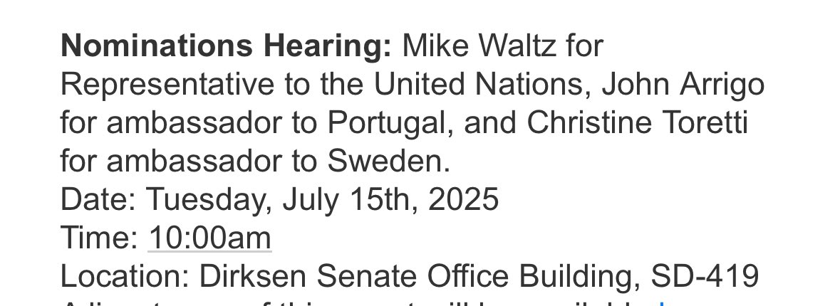 🏛️اليوم تستمع لجنة العلاقات الخارجية لإفادة مرشح #ترمب لمنصب مندوب في الأمم المتحدة مايك والتز.