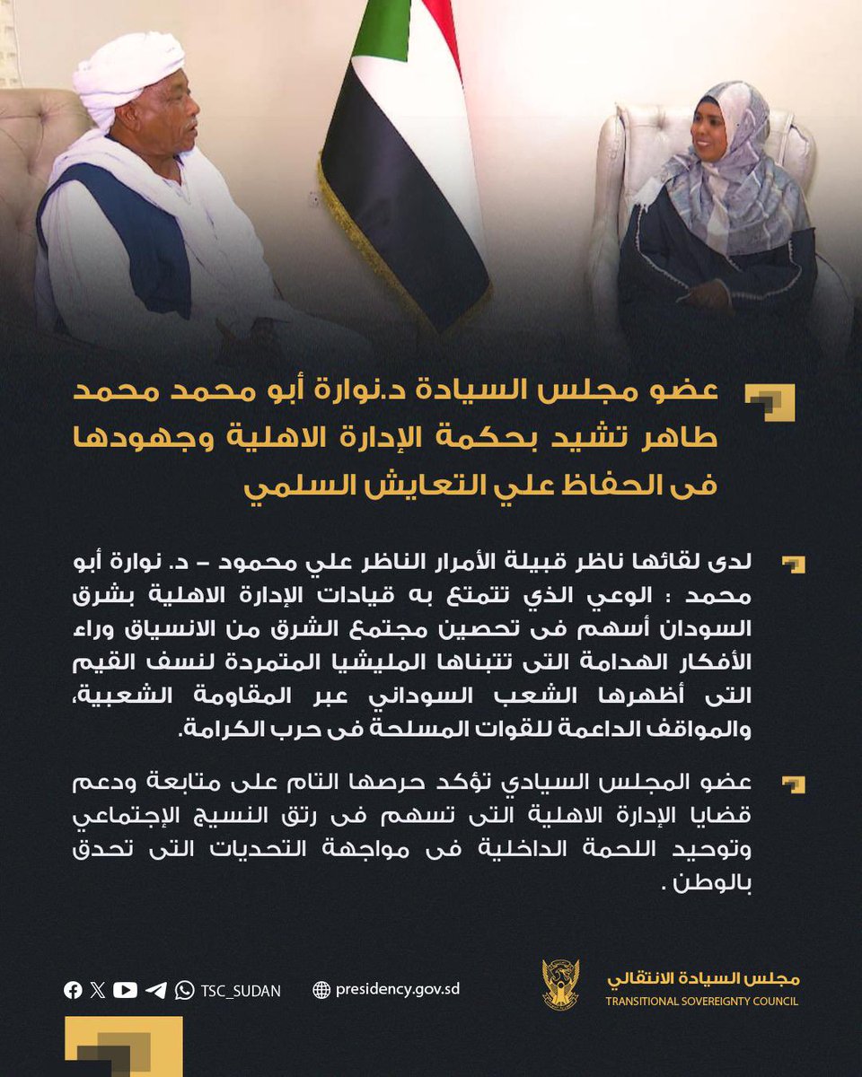 مجلس السيادة عضو مجلس السيادة د.نوارة أبو محمد محمد طاهر تشيد بحكمة الإدارة الاهلية وجهودها … By null Published July 27, 2025 Share SHARE Facebook Twitter Pinterest LinkedIn[ad_1] ⭕️ عضو مجلس السيادة د.نوارة أبو محمد محمد طاهر تشيد بحكمة الإدارة الاهلية وجهودها فى الحفاظ علي التعايش السلمي بورتسودان ٨-٧-٢٠٢٥م [ad_2] Source by مجلس السيادة الإنتقالي – السودان Facebook Twitter Pinterest LinkedIn Share This Article Facebook Twitter Email Print Previous Article على هامش القمة، سأعقد سلسلة من اللقاءات الثنائية مع عدد من رؤساء الوفود المشاركة… Next Article صاحب المشروع عليه أن ينشغل بدعوته …. Leave a Comment Leave a Reply Cancel replyYour email address will not be published. Required fields are marked *Comment * Name * Email * Website Save my name, email, and website in this browser for the next time I comment. Δ SearchSearchRecent Postsأكرمنا الله صباح اليوم الأحد بلقاء إخوةٍ كرام، على ضفة النيل الأزرق، حيث شاي الش… أعلن بنك السودان المركزي في منشور إدارة السياسات رقم (2025/15) رفع الاحتكار عن ا… ندوة بعنوان: القانون الدولي والسيادة الوطنية قراءة في موقف السودان من لجنة تقصي … والي نهر النيل تستقبل وزير الموارد البشرية والرعاية الاجتماعية الوزير يشيد بالأ… كامل ادريس: رئيس اللجنة السياسية لمؤسسات الدولة السودانية. Recent CommentsNo comments to show.