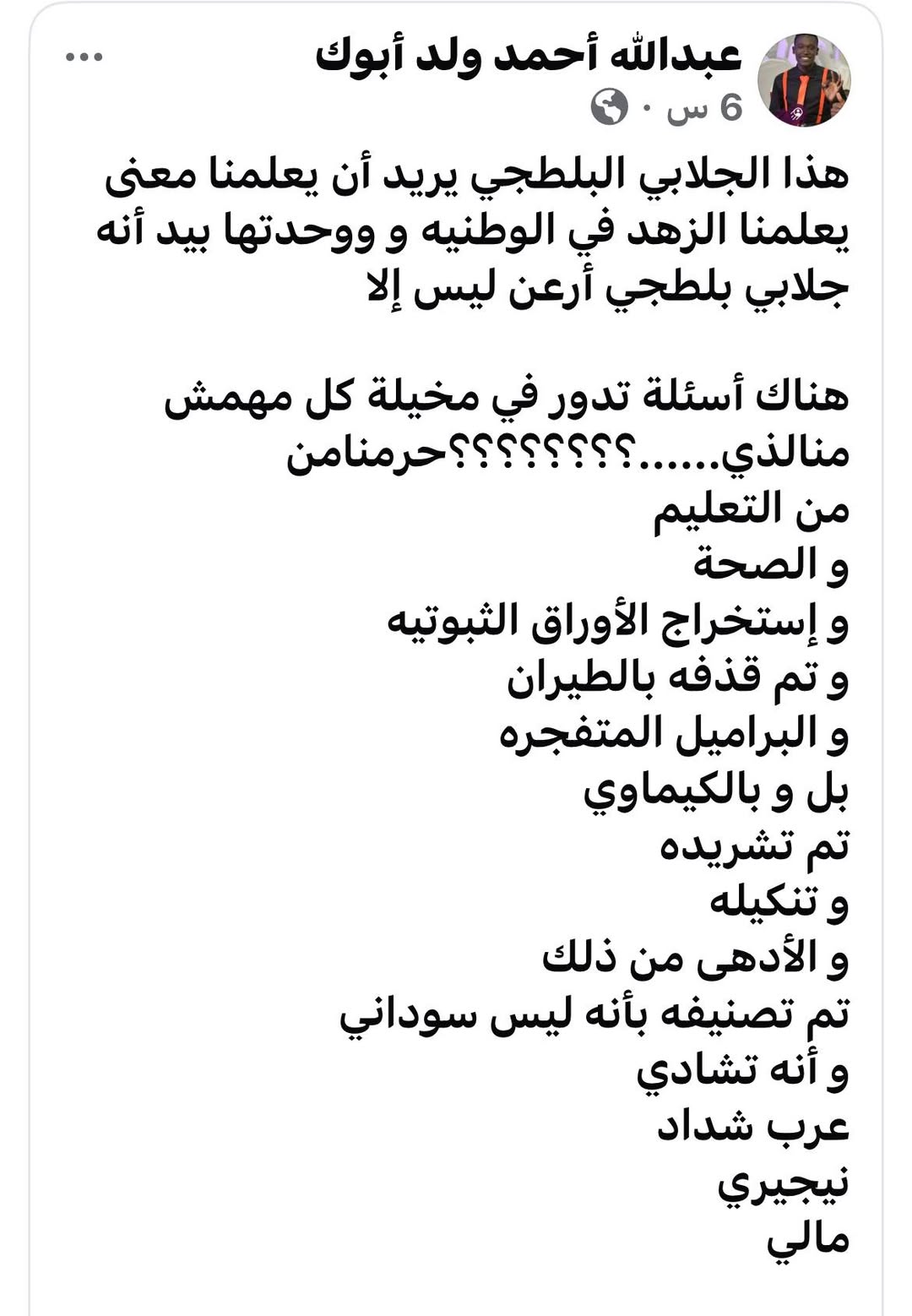 المشكلة مش في اني طلعت جلابي بلطجي وارعن كمان ولا المشكلة ان الطرف الاخر برضو مصنفنا جنجويد المشكلة ان المحرك الاساسي للبلد هي الاصوات اللي اصلاً ما بتفهم حتى المكتوب قدامها وبتدخل تركب الموجة .