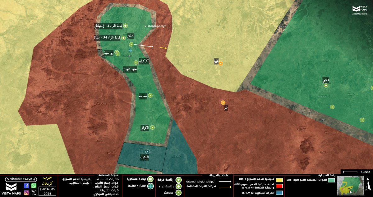– حاصرت القوات المسلحة السودانية مجموعة من مقاتلي مليشيا الدعم السريع وعناصر الجيش الشعبي عقب تنفيذهم هجومًا بالطائرات المسيرة والمدفعية على مدينة الدلنج، وأسفرت العملية عن استيلاء القوات المسلحة على غنائم ومعدات عسكرية من القوات المتحالفة.
