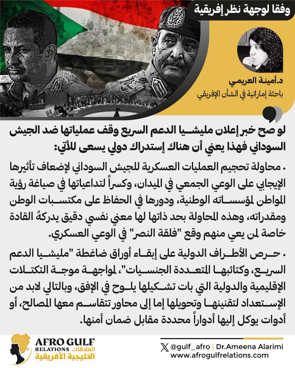 2️⃣ لو صح خبر إعلان مليشيا #الدعم_السريع وقف عملياتها ضد #الجيش_السوداني فهذا يعني أن هناك إستدراك دولي يسعى للأتي: