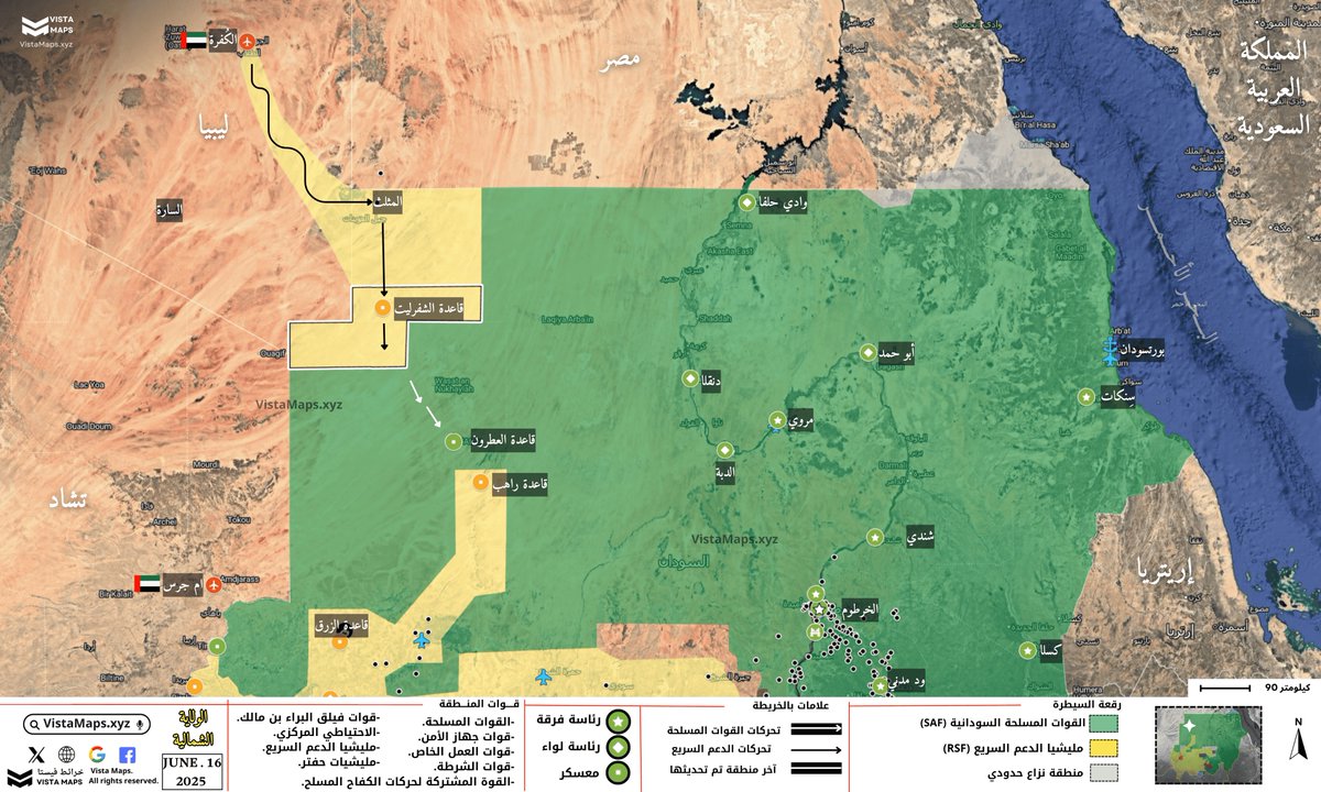 – بعون من مليشيات حفتر، تمكنت مجموعة من مليشيا الدعم السريع جرى تدريبها في ليبيا من السيطرة على قاعدة الشفرليت “كرب التوم” وعلى الحدود السودانية الليبية عقب انسحاب القوات المسلحة السودانية إلى قاعدة العطرون.