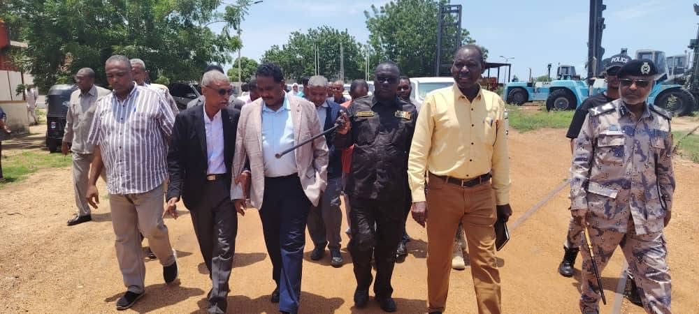 ووقف الوالي والوفد المرافق له بالميناء الجاف على أداء إدارة التخليص الجمركي وإدارة المواصفات والمقاييس في العمل التجاري وتعرف على نظام الصادر والوارد بالميناء كما عقد اجتماعا موسعا مع ادارة النقل النهري استمع فيه لجملة من المعوقات التى تعترض سير عمل النقل النهري والذي داعا الي تضافر الجهود المركزية والولائية من أجل تطوير أداء النقل النهري لخدمة القضايا التجارية والاجتماعية.