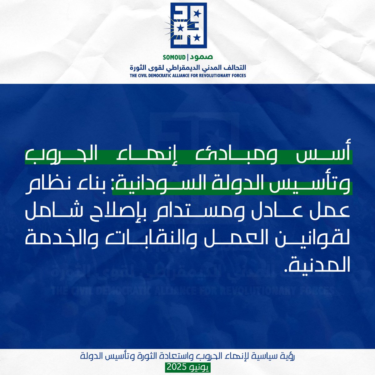 أسس ومبادئ إنهاء الحروب وتأسيس الدولة السودانية: بناء نظام عمل عادل ومستدام بإصلاح شامل لقوانين العمل والنقابات والخدمة المدنية.