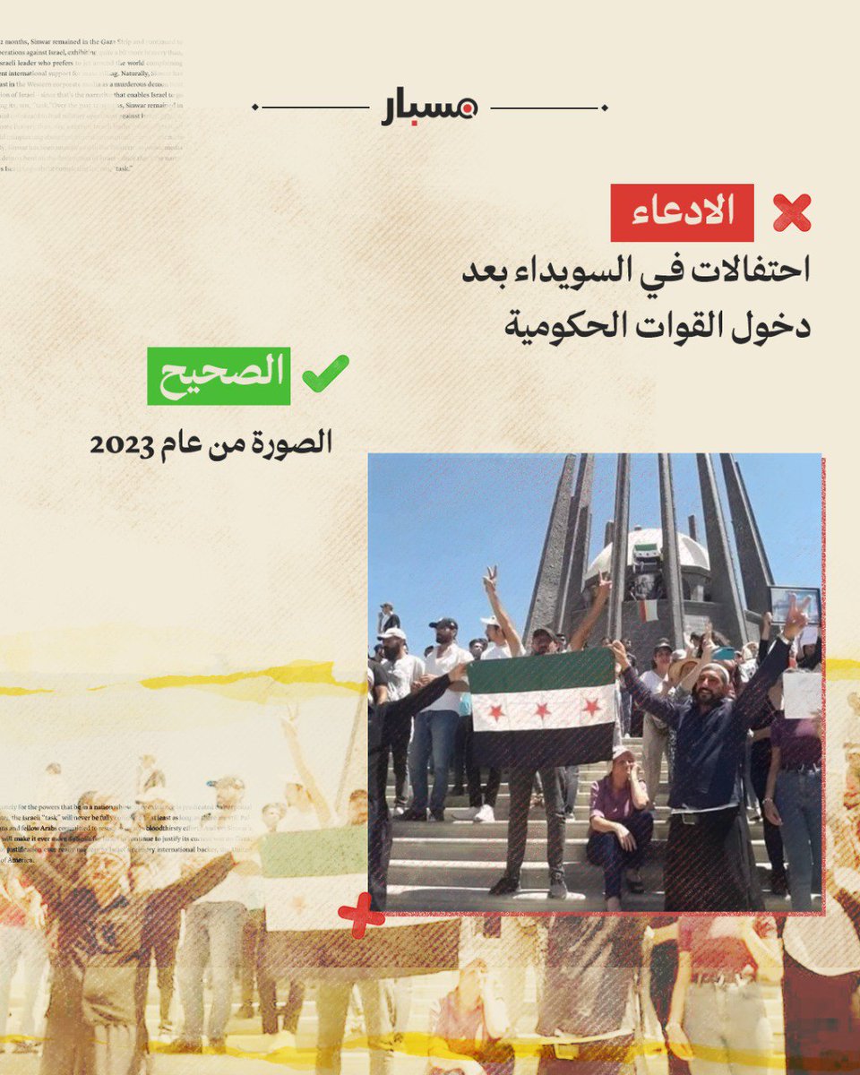 #مسبار_سوريا | ✅الصورة من 2023، وقد نشرتها حسابات على مواقع التواصل الاجتماعي ومواقع إلكترونية على أنها لرفع عَلَم الثورة السورية حينها، أمام ضريح سلطان باشا الأطرش في بلدة “القريا” بريف #السويداء.