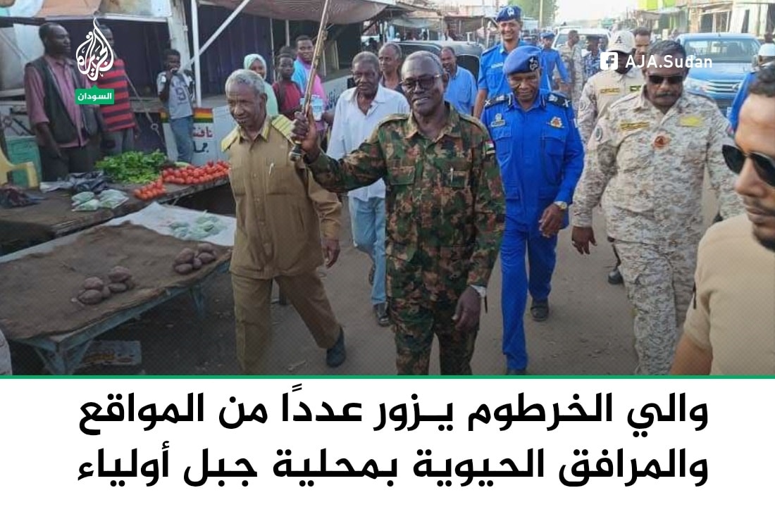 والي الخرطوم أحمد عثمان حمزة يزور مراكز الشرطة والمستشفيات والأسواق في محلية جبل أولياء، ويقول إن التحدي الأكبر أمام حكومته هو تحقيق الأمن وتهيئة البيئة لعودة الحياة إلى طبيعتها، إلى جانب دعم وتطوير الخدمات الأساسية لتحسين حياة المواطنين
