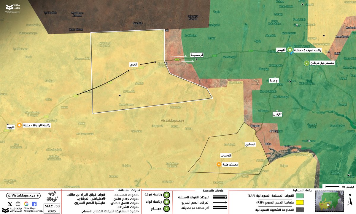– وبهذا التطور تعود خارطة السيطرة في إقليم كردفان إلى ما كانت عليه بتاريخ 10 مايو قبل تقدم الجيش إلى كل من الخوي، الحمادي، والدبيبات.