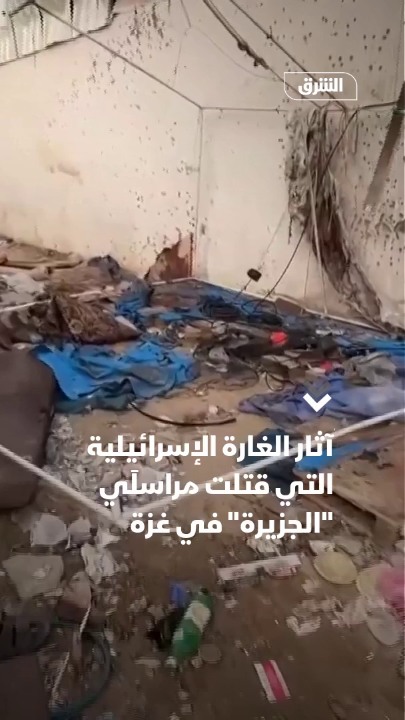 مشاهد من آثار الدمار بعد الغارة الإسرائيلية التي استهدفت خيمة للصحفيين أمام مجمع الشفاء الطبي في غزة، وقتلت 6 أشخاص وهم أنس الشريف ومحمد قريقع مراسلا قناة “الجزيرة” في القطاع، والمصورون إبراهيم ظاهر ومحمد نوفل ومؤمن عليوة ومحمد الخالدي