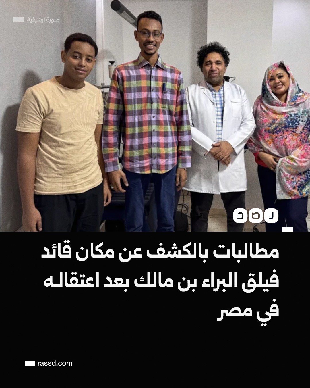 نشطاء ومؤسسات سودانية تطالب بالكشف عن مكان اختفاء «المصباح أبو زيد» قائد فيلق البراء بن مالك المقاتل بجانب الجيش السوداني، بعد مداهمة قوات الأمن مقر إقامته واعتقاله أثناء زيارته لأسرته في مصر