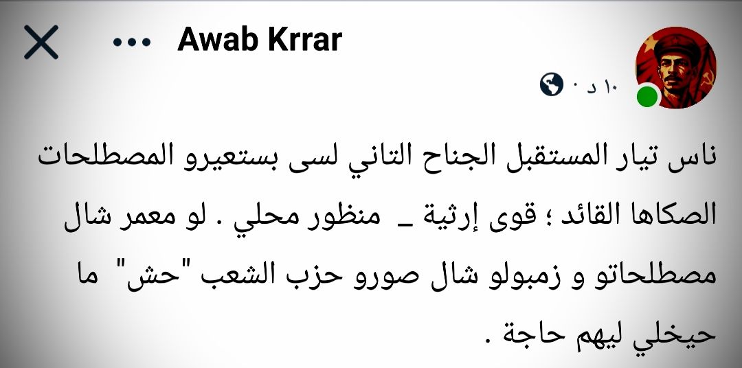 في صفحة مسيطر عليها ود ماري بحالة مراهقة ماركسية حالة تشبه نسوية وئام شوقي ، وهي حالة يمكنني تسميتها بعقدة الذنب البرجوازية التي تنتاب عيال الشهادة العربية وبسببها ببقو ماركسيين من عمر العشرين لحدي عمر التلاتين وبعداك ببقو ليبرال.