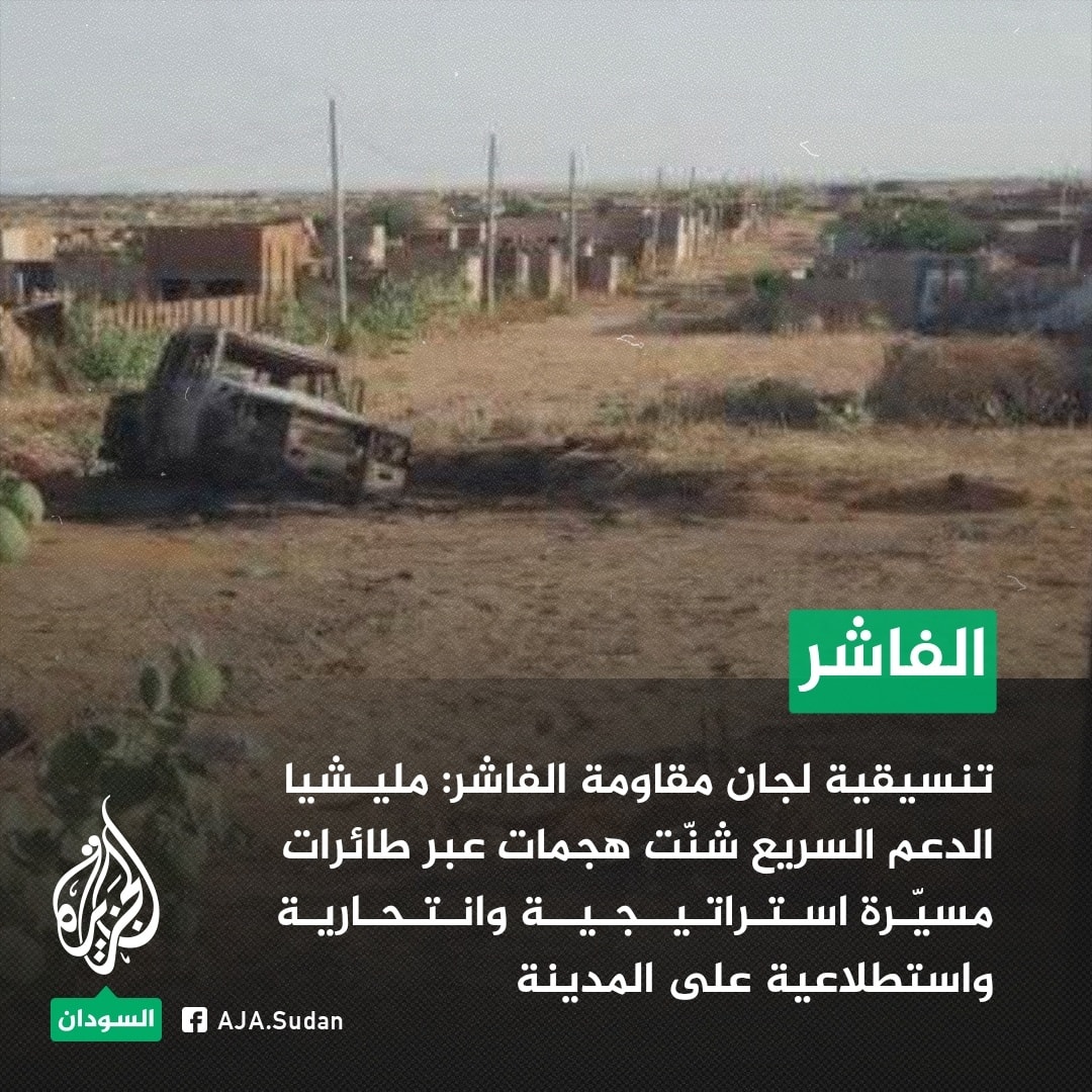 تنسيقية لجان مقاومة الفاشر: مليشيا الدعم السريع شنّت هجمات عبر إطلاق طائرات مسيّ…