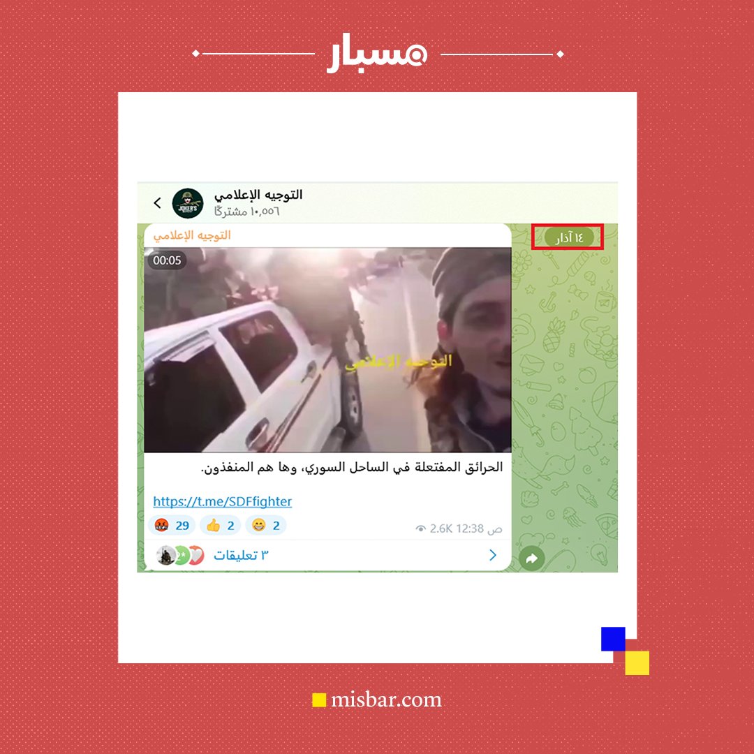 في حين وجّه أحد المستخدمين اتهامًا لقوات حكومية بإشعال الحرائق مستندًا إلى مقطع فيديو يظهر مسلحين يعترفون بإضرام النار، إلا أن البحث أظهر أن الفيديو منشور مسبقًا على حساب في قناة تليغرام بتاريخ 14 مارس الفائت مرفقًا بوصف يقول: “الحرائق المفتعلة في الساحل السوري، وها هم المنفذون”.