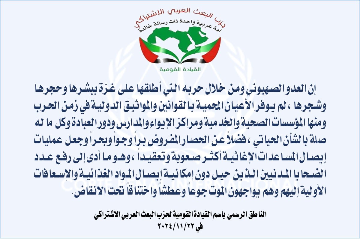 مقتطفات من تصريح الناطق الرسمي باسم القيادة القومية لحزب البعث العربي الاشتراكي …