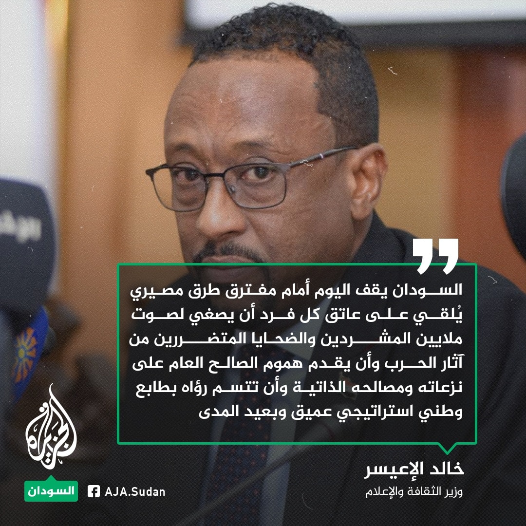 وزير الثقافة والإعلام خالد الإعيسر: #السودان يقف أمام مفترق طرق مصيري يُلقي على…