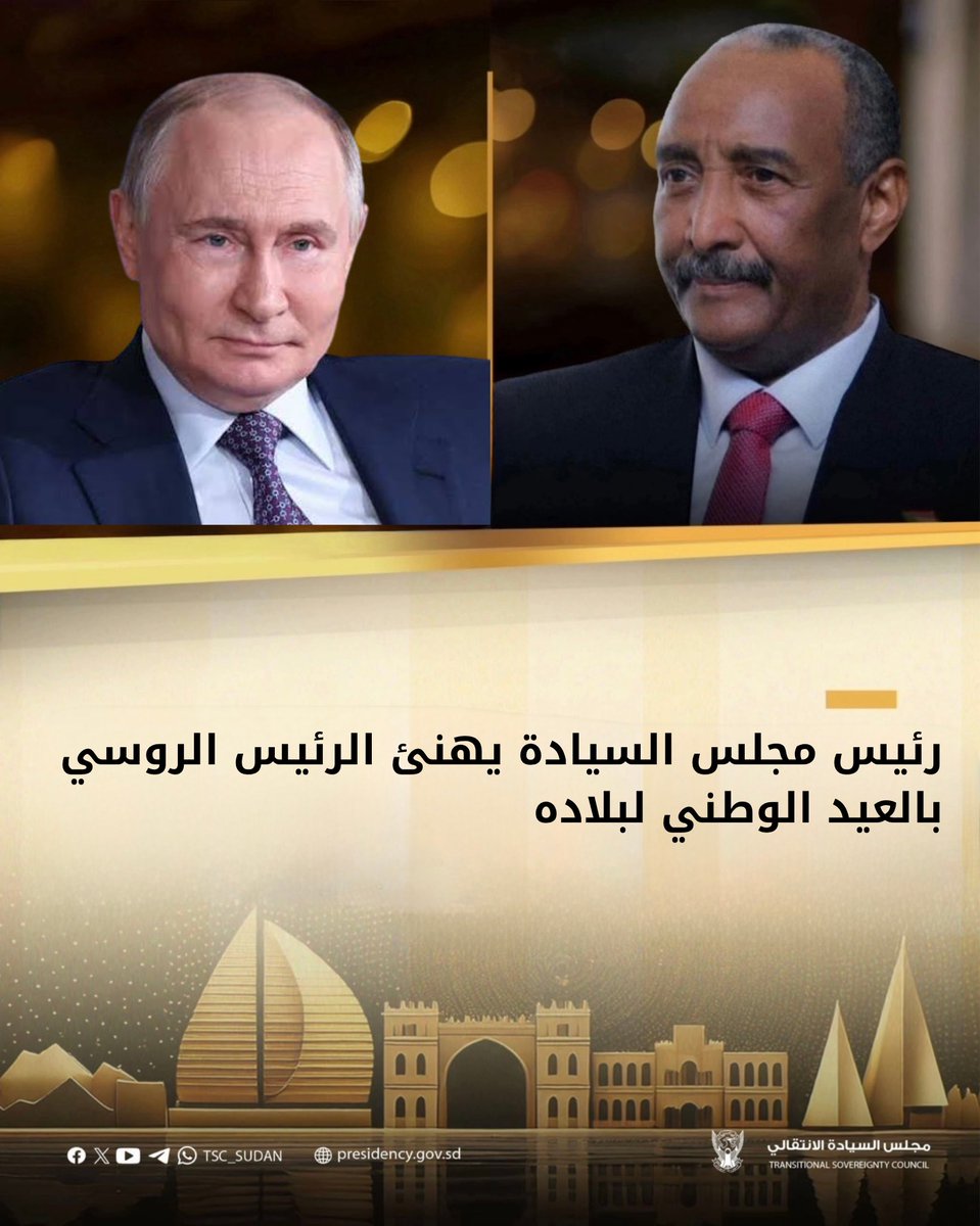 مجلس السيادة رئيس مجلس السيادة يهنئ الرئيس الروسي بالعيد الوطني لبلاده بورتسودان : ١٢-٦-٢٠٢… By null Published August 13, 2025 Share SHARE Facebook Twitter Pinterest LinkedIn[ad_1] ⭕️ رئيس مجلس السيادة يهنئ الرئيس الروسي بالعيد الوطني لبلاده بورتسودان : ١٢-٦-٢٠٢٥ [ad_2] Source by مجلس السيادة الإنتقالي – السودان Facebook Twitter Pinterest LinkedIn Share This Article Facebook Twitter Email Print Previous Article وشددت علي ضرورة تضافر الجهود والتنسيق المشترك من أجل تعزيز حماية المرأة والطفل م… Next Article الآن بث مباشر . … Leave a Comment Leave a Reply Cancel replyYour email address will not be published. Required fields are marked *Comment * Name * Email * Website Save my name, email, and website in this browser for the next time I comment. Δ SearchSearchRecent Postsأكرمنا الله صباح اليوم الأحد بلقاء إخوةٍ كرام، على ضفة النيل الأزرق، حيث شاي الش… أعلن بنك السودان المركزي في منشور إدارة السياسات رقم (2025/15) رفع الاحتكار عن ا… ندوة بعنوان: القانون الدولي والسيادة الوطنية قراءة في موقف السودان من لجنة تقصي … والي نهر النيل تستقبل وزير الموارد البشرية والرعاية الاجتماعية الوزير يشيد بالأ… كامل ادريس: رئيس اللجنة السياسية لمؤسسات الدولة السودانية. Recent CommentsNo comments to show.
