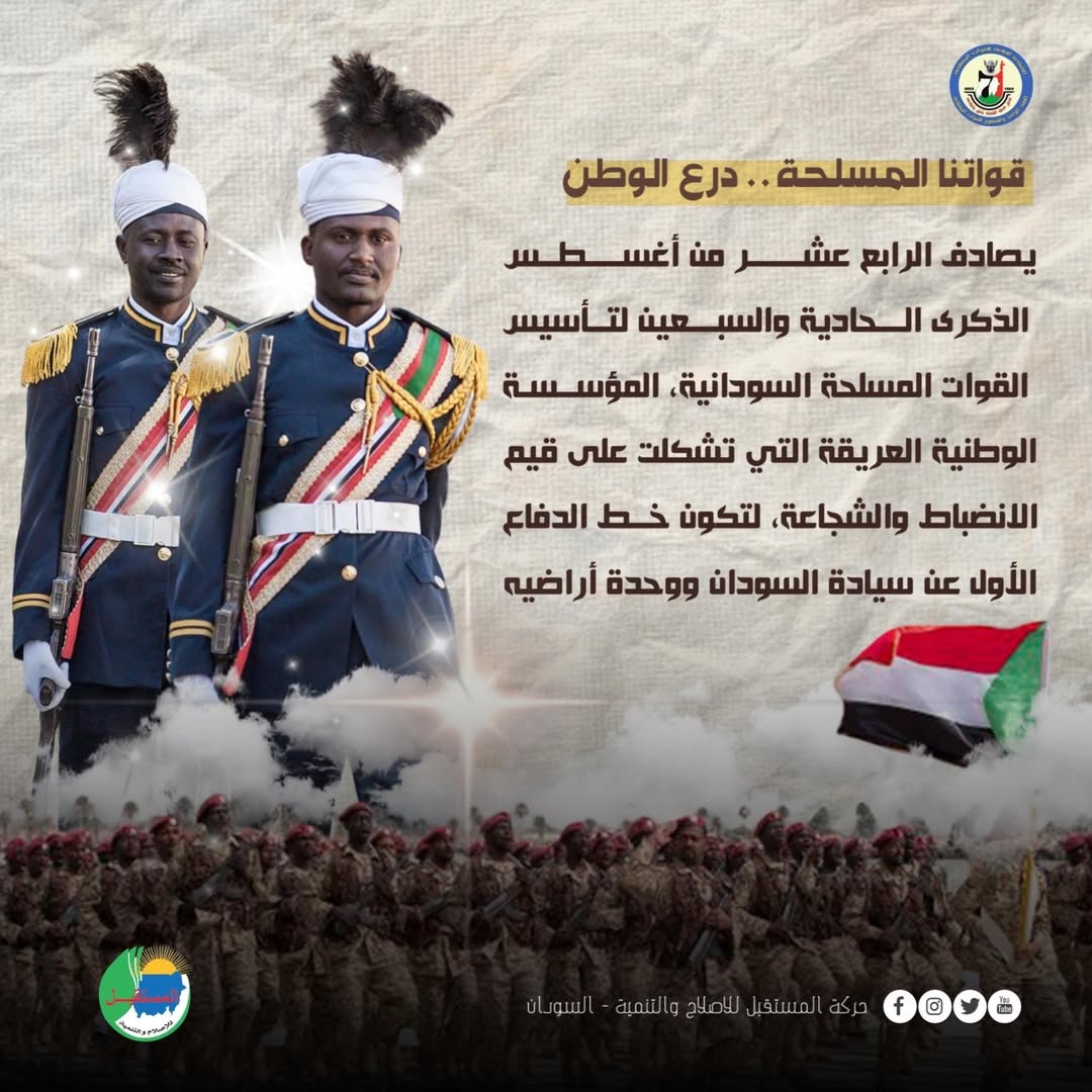 في هذه المناسبة الوطنية الخالدة، نُحيي الذكرى الحادية والسبعين لسودنة قيادة قواتنا المسلحة، ذلك اليوم الذي رسّخ استقلال القرار العسكري وأثبت أن السودان قادر على حماية نفسه بسواعد أبنائه.