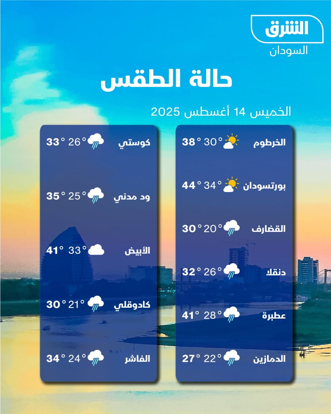 قناة الشرق حالة #الطقس في #السودان غداً #الشرق_السودان By null Published August 14, 2025 Share SHARE Facebook Twitter Pinterest LinkedIn[ad_1] حالة #الطقس في #السودان غداً #الشرق_السودان [ad_2] Source Facebook Twitter Pinterest LinkedIn Share This Article Facebook Twitter Email Print Previous Article أسماء الشهداء: – الشيخ عامر أحمد – عبد الباقي علي عبيد – مهدي علي الطيب – يوس… Next Article جهاز حماية الأراضي بالخرطوم: أزلنا تعديات مرسى شمبات لكونه مهددًا أمنيًا ومخصصًا… Leave a Comment Leave a Reply Cancel replyYour email address will not be published. Required fields are marked *Comment * Name * Email * Website Save my name, email, and website in this browser for the next time I comment. Δ SearchSearchRecent Postsأكرمنا الله صباح اليوم الأحد بلقاء إخوةٍ كرام، على ضفة النيل الأزرق، حيث شاي الش… أعلن بنك السودان المركزي في منشور إدارة السياسات رقم (2025/15) رفع الاحتكار عن ا… ندوة بعنوان: القانون الدولي والسيادة الوطنية قراءة في موقف السودان من لجنة تقصي … والي نهر النيل تستقبل وزير الموارد البشرية والرعاية الاجتماعية الوزير يشيد بالأ… كامل ادريس: رئيس اللجنة السياسية لمؤسسات الدولة السودانية. Recent CommentsNo comments to show.