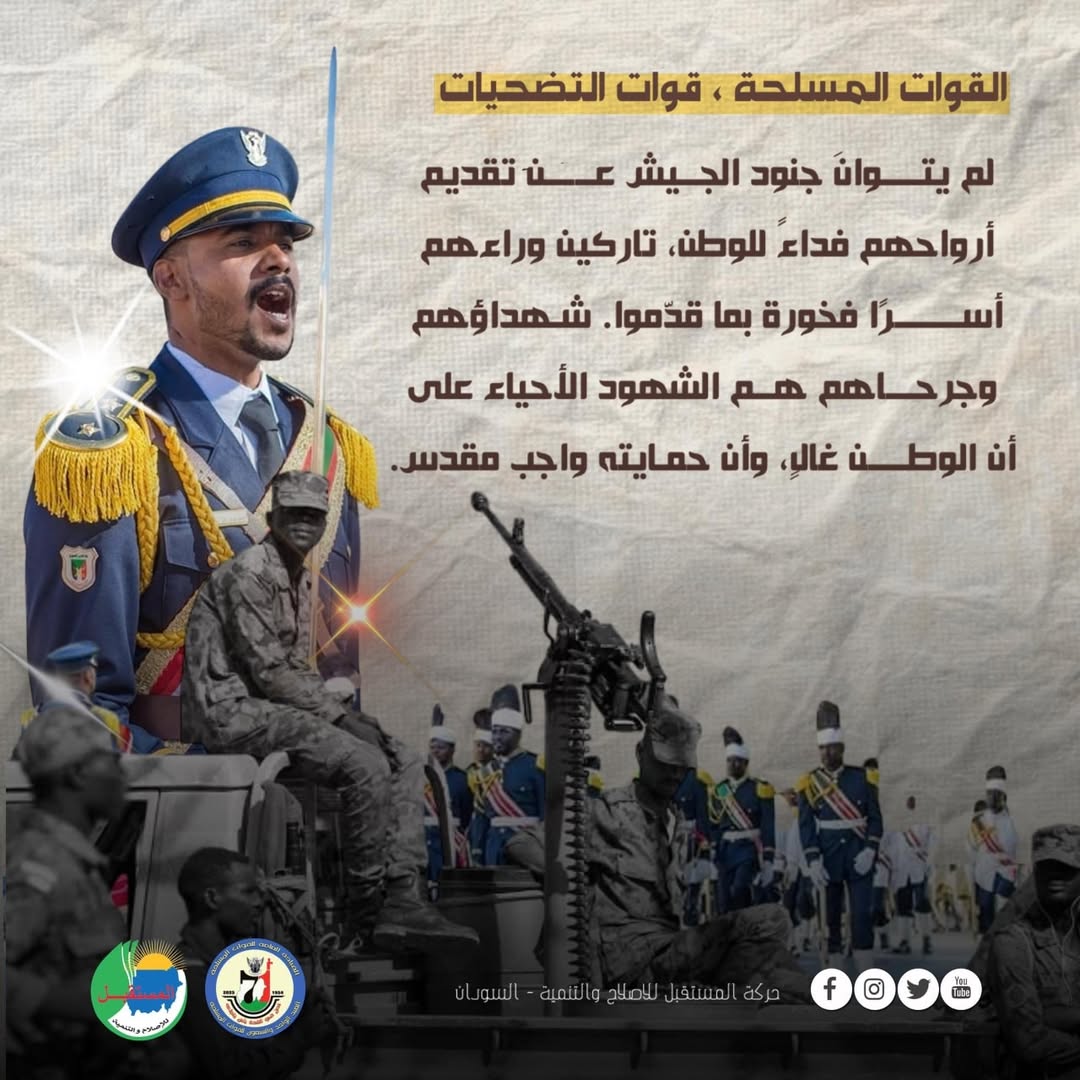 لقد كان الجيش السوداني، على امتداد تاريخه المجيد، حصن الوطن المنيع، ودرعه الصلب، وسيفه البتار في وجه كل تهديد، حاملاً راية السيادة والوحدة، ومتمسكًا بقيم الجندية النبيلة القائمة على التضحية والفداء. لم يكن الجيش يومًا مجرد مؤسسة عسكرية، بل كان وسيظل عمودًا من أعمدة الدولة الوطنية، وركيزة الأمن والاستقرار.