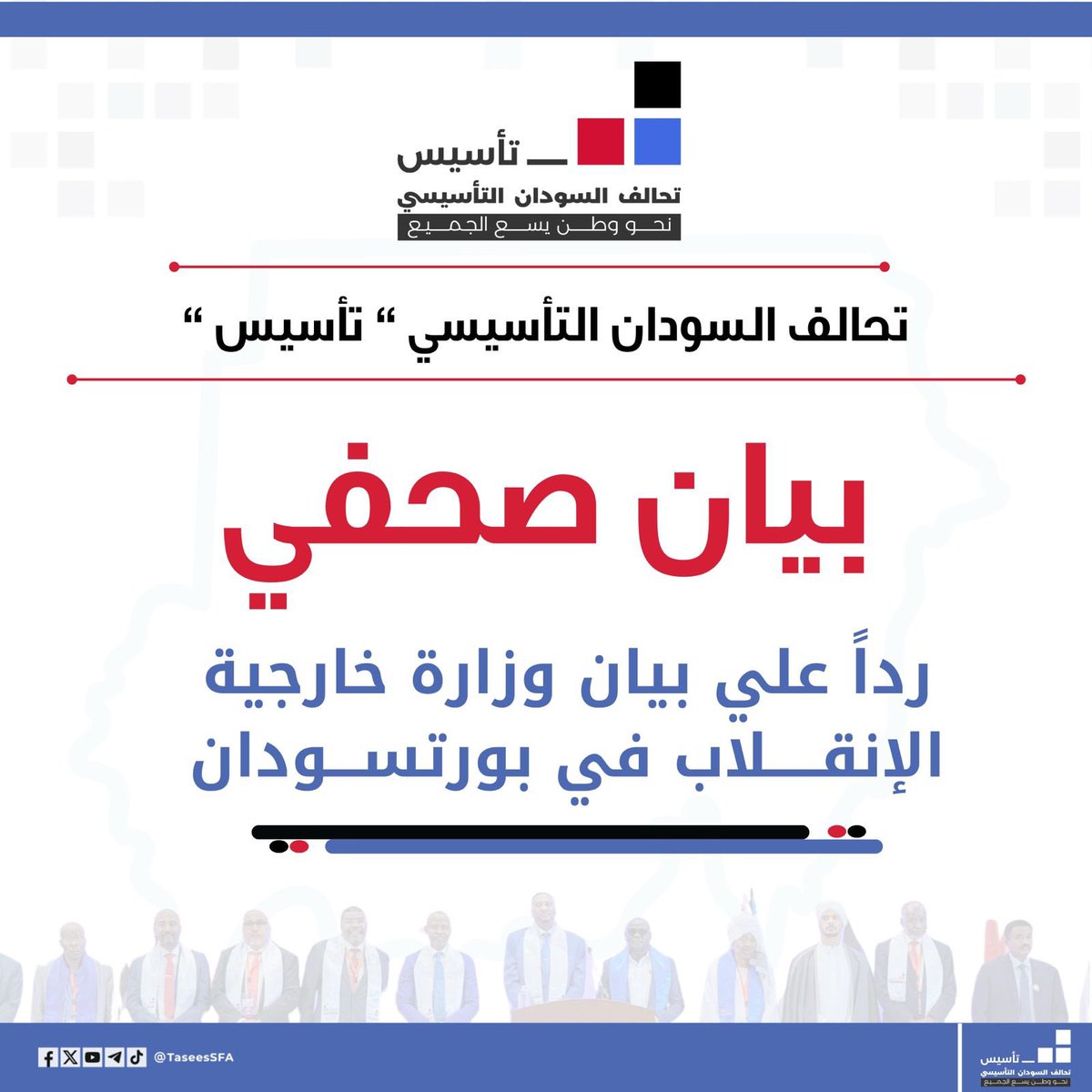 تابع تحالف السودان التأسيسي ما ورد في بيان وزارة خارجية السلطة الانقلابية المتمركزة في بورتسودان، والصادر بتاريخ 12 أبريل 2025، والذي حفلت سطوره بتلفيقات سافرة، وادعاءات مجافية للحقيقة، في محاولة يائسة للتشويش على إرادة الشعب السوداني الساعية للسلام والتحول المدني الديمقراطي، والتشكيك في جهود الدول الإقليمية والدولية الداعمة لهذا المسار العادل.