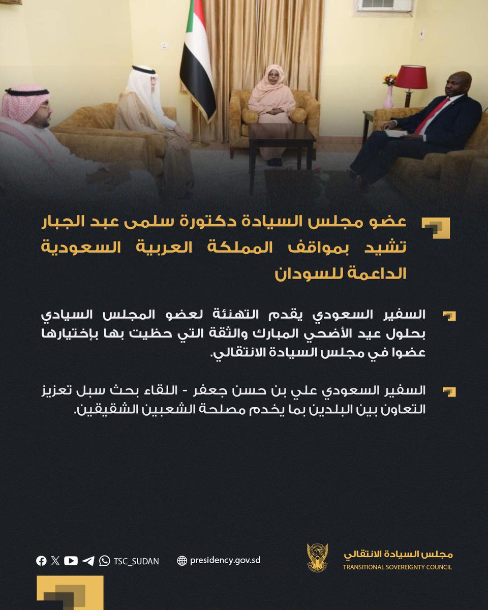 مجلس السيادة عضو مجلس السيادة دكتورة سلمى عبد الجبار تشيد بمواقف المملكة العربية السعودية ال… By null Published August 14, 2025 Share SHARE Facebook Twitter Pinterest LinkedIn[ad_1] ⭕️ عضو مجلس السيادة دكتورة سلمى عبد الجبار تشيد بمواقف المملكة العربية السعودية الداعمة للسودان بورتسودان ١١-٦-٢٠٢٥م [ad_2] Source by مجلس السيادة الإنتقالي – السودان Facebook Twitter Pinterest LinkedIn Share This Article Facebook Twitter Email Print Previous Article to reform the state’s administrative apparatus, establish practical mechanisms f… Next Article مناوي : لا أظن أن الجيش استخدم السلاح الكيماوي الا إذا ثبت #السودان الأن على ي… Leave a Comment Leave a Reply Cancel replyYour email address will not be published. Required fields are marked *Comment * Name * Email * Website Save my name, email, and website in this browser for the next time I comment. Δ SearchSearchRecent Postsأكرمنا الله صباح اليوم الأحد بلقاء إخوةٍ كرام، على ضفة النيل الأزرق، حيث شاي الش… أعلن بنك السودان المركزي في منشور إدارة السياسات رقم (2025/15) رفع الاحتكار عن ا… ندوة بعنوان: القانون الدولي والسيادة الوطنية قراءة في موقف السودان من لجنة تقصي … والي نهر النيل تستقبل وزير الموارد البشرية والرعاية الاجتماعية الوزير يشيد بالأ… كامل ادريس: رئيس اللجنة السياسية لمؤسسات الدولة السودانية. Recent CommentsNo comments to show.