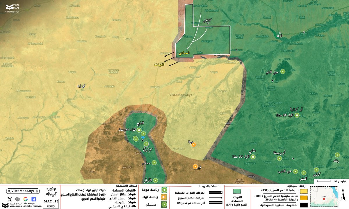– ولم يتبقَ أمام “متحرك الصياد” سوى مدينة الدبيبات التي تفصلهم حاليًا عن فك حصار مدينة الدلنج حيث تقع رئاسة اللواء 54 مشاة، وتبعد الدبيبات مسافة 18 كيلومترًا فقط عن مواقع انتشار القوات المسلحة السودانية في مدينة الحمادي.