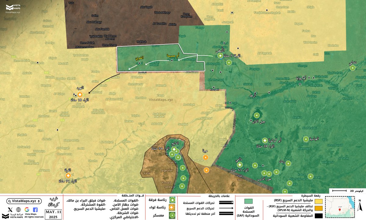 – مليشيا الدعم السريع بعد تقدمها في 3 مايو اليوم تنسحب من جميع المواقع المذكورة، إضافة إلى القرى المجاورة لها وتتجه نحو مدينة النهود.