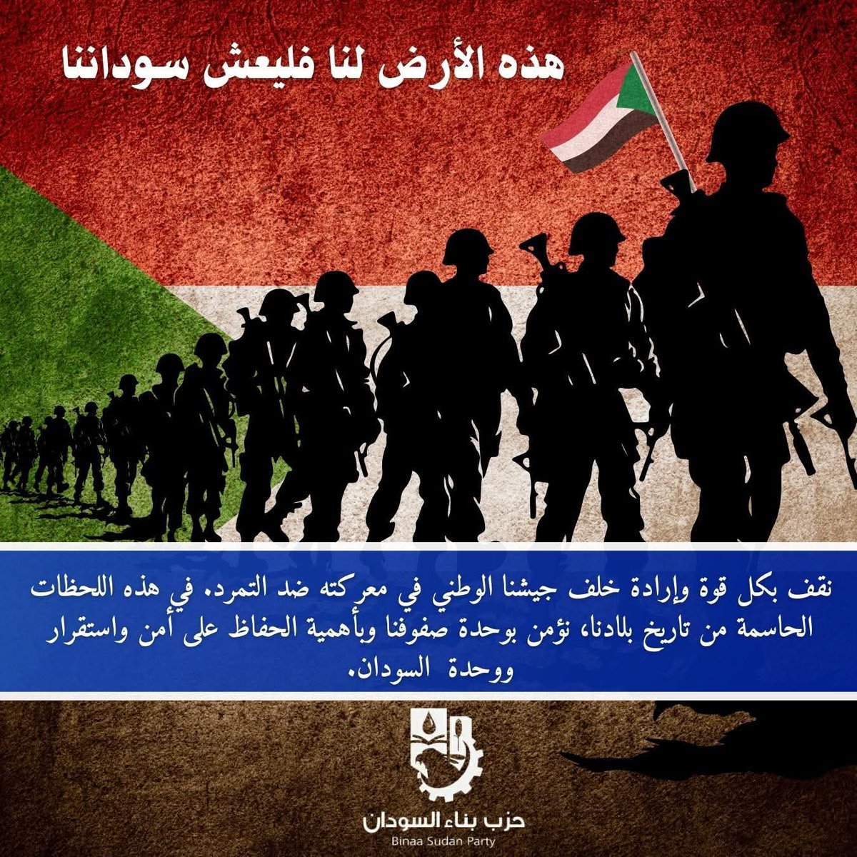 في حزب بناء السودان، نرى أنه طالما قامت الحرب ووقعت الكارثة، فإن الخيار العقلاني والموضوعي هو دعم الجيش وإسناده سياسيًا، من منطلق تعظيم مكاسبه، التي نؤمن أنها الأقرب لتحقيق مكتسبات المواطنين في ظل أي اتفاق سلام محتمل. هذا التوجه ليس مجرد موقف سياسي، بل هو التزام عملي بتقديم حلول تخدم المصلحة العامة وتحقق الأمان والاستقرار.