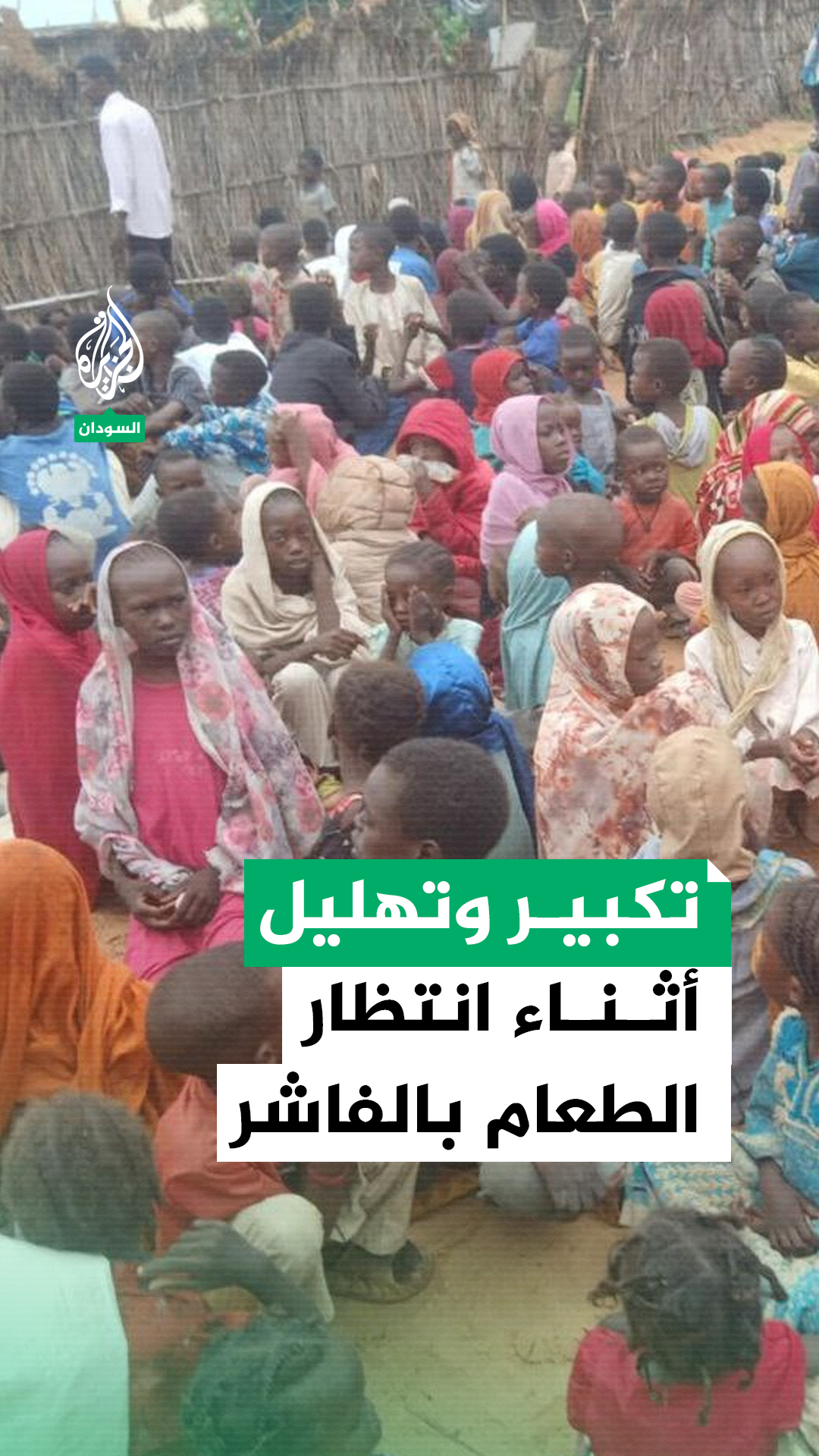 أطفال في مدينة الفاشر، عاصمة ولاية شمال دارفور، يملأون لحظات انتظار الطعام بالتكبير والتهليل، وذلك في “تكية الفاشر”، أكبر مطبخ خيري يقدم الطعام للنازحين والمواطنين في المدينة المحاصرة من قبل قوات الدعم السريع منذ 14 شهرًا، والتي تعيش أوضاعًا إنسانية بالغة السوء جراء الحصار