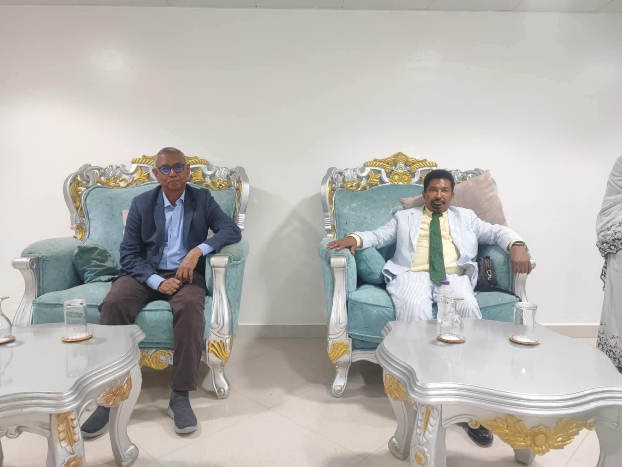 الصورة: المنصوري في بورتسودان قادما من الإمارات وسط استقبال في الصالة الرئاسية بمطار بورتسودان.