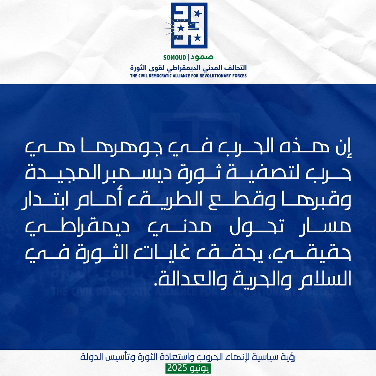 تحالف “صمود” : إن هذه الحرب في جوهرها هي حرب لتصفية ثورة ديسمبر المجيدة وقبرها وقطع الطريق أمام ابتدار مسار تحول مدني ديمقراطي حقيقي، يحقق غايات الثورة في السلام والحرية والعدالة.