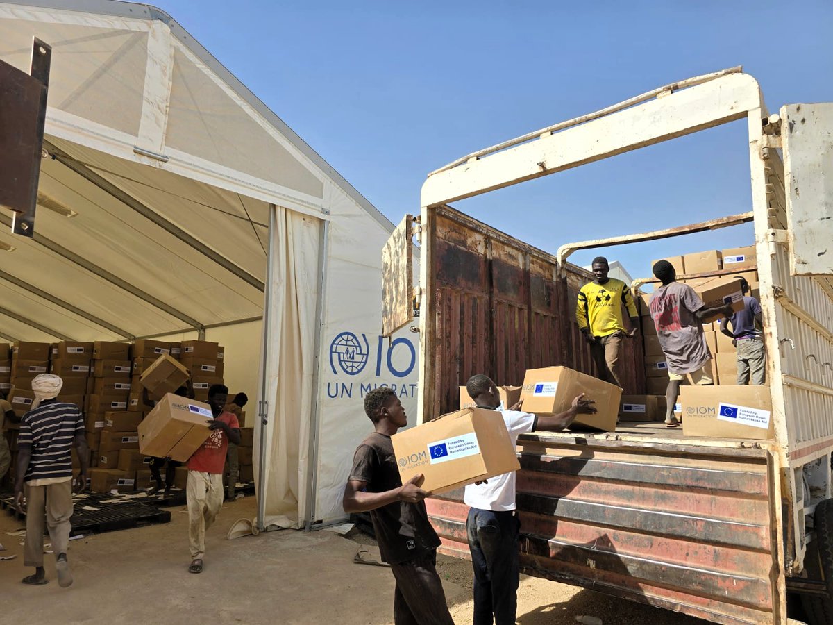 🚛17 IOM trucks have crossed the #Adre border from 🇹🇩Chad into 🇸🇩#Sudan, carrying life-saving relief items to reach over 42,000 people in Darfur, thanks to @eu_echo.