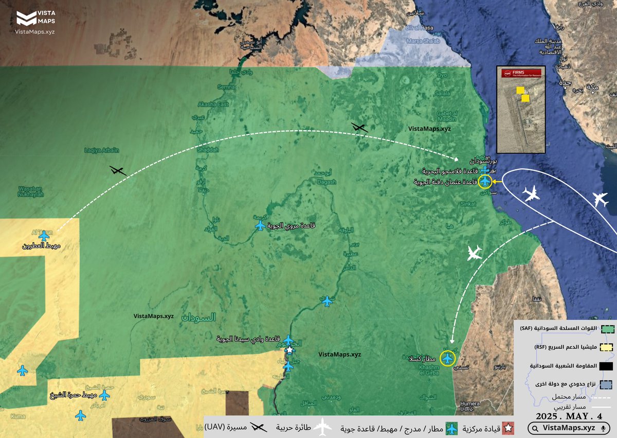 تشير تحليلاتنا إلى أن مدى “المسيرات الاستراتيجية” التي تمتلكها مليشيا الدعم السريع وتمكنها من تسديد ضربات دقيقة مثل FH-95 لا تستطيع الوصول إلى مدينة بورتسودان أو ولاية البحر الأحمر التي تبعد قرابة 1100 كيلومتر عن أقرب نقطة اطلاق مسيرات محتملة للمليشيا في “حمرة الشيخ”.