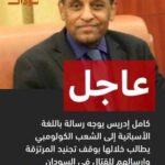 رئيس مجلس الوزراء د.كامل إدريس يوجه رسالة مؤثرة باللغة الإسبانية إلى الشعب الكولومبي، داعياً إياه إلى وقف تجنيد المرتزقة وإرسالهم إلى دارفور.